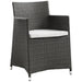 Converge for great moments spent outdoors with the Junction Outdoor Patio Dining Furniture Set. Junction Patio Furniture is a proudly designed set with an audacious style that encourages lively repartee. Covered in a synthetic rattan weave, all-weather machine washable seat cushion, and powder-coated aluminum frame with plastic foot glides, Junction Outdoor Patio set does not require assembly and comes ready for contemporary patios, backyards, poolside, and other outdoor lounge areas.