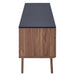 Tap into mid-century aesthetics in your living space with the Scope 71" TV Stand. Featuring a linear silhouette with crisp lines and edges, this TV stand comes with smooth walnut grain laminate, a durable particleboard frame, contrasting gray lacquer accents, splayed and sturdy legs, and six full-extension drawers for sophisticated media storage. Scope's contemporary linear style is the perfect addition to the modern living room, lounge or recreation area. Accommodates up to 78" TVs.