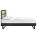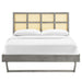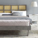 Infuse modern style into a guest bedroom or master bedroom decor with the retro detail and organic aesthetics of the Sidney Woven Cane Rattan Wood King Platform Bed. Fusing mid-century modernity with tropical vibes, the king size headboard of this wood bed features a beautiful cane pattern that offers the design an airy, organic aesthetic. This platform bed frame is a sturdy addition to the bedroom with a durable wood, MDF, and veneer construction and angular rubberwood legs. Eliminating the need for a box spring, this king bed is complete with a wood slat support system, reinforced center beam, and supporting legs that make it a lasting mattress foundation for memory foam, latex, innerspring, and hybrid mattresses. Assembly required. King Bed Frame Weight Capacity: 601 lbs.