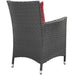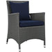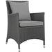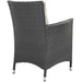 Outfit your patio with an imaginative Sojourn Outdoor Patio Furniture series. The Sojourn Patio Dining Collection offers a robust seating experience that easily rearranges according to usage. Outfitted with industry-leading Sunbrella� fabric cushions, synthetic rattan weave, UV protection, powder-coated aluminum frame, immensely enjoy your outdoor time with an outdoor dining series that enhances patio, backyard, or poolside areas. This installment of the series is an Outdoor Patio Dining Set.
