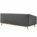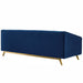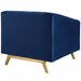 Harness the visual appeal of linear elements with the Valiant 2 Piece Performance Velvet Set. Interior vertical channel tufting of this Sofa and Armchair Set creates a directed flow that adds depth to your retro modern living room, lounge room, or home office. Each subtle retro modern accent swirls together for an organically designed set that provides both decor appeal and premium comfort. Soft, stain-resistant performance velvet upholstery covers an individually-wrapped pocket coil support system encased in dense foam padding for a luxurious seating experience. The Valiant upholstered velvet set rests securely on four splayed and tapered gold stainless steel legs with non-marking foot caps.