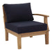 Harbor your greatest expectations with the luxurious Marina Teak Wood Outdoor Patio Furniture Sofa Sectional set. Marina Patio Furniture series has a seating arrangement perfect for every member of your crew as you breathe the fresh, crisp air of a day spent with friends and family. Known for its natural ability to withstand extreme weather conditions, teak is the wood selection of choice for long-lasting outdoor patio furniture. Now you can enjoy Marina Teak Wood Outdoor Sectional Sofa set with its durable construction and all-weather cushions, alongside a modern design that persistently looks new and welcoming in your patio seating environs. Assembly required. Set Includes: One - Marina Teak Coffee Table One - Marina Teak Sofa Two - Marina Teak Armchair Two - Marina Teak Ottoman Two - Marina Teak Side Table Solid teak wood construction Richly textured wood graining Water & UV Resistant Cushions Machine Washable Covers Grade A Premium Teak Overall Product Dimensions: 54.5"L x 160.5"W x 31.5"H Overall Sofa Dimensions: 32.5"L x 56.5"W x 31.5"H Overall Ottoman Dimensions: 23.5"L x 21"W x 11"H Overall Coffee Table Dimensions: 23.5"L x 47"W x 17.5"H Overall Armchair Dimensions: 31.5"L x 32.5"W x 31.5"H Overall Side Table Dimensions: 19.5"L x 19.5"W x 19.5"H Seat Dimensions: 31"L x 26"W x 12"H Backrest Height: 20"H Armrest Height: 12"H Floor to underside of table: 16.5"H Table top thickness: 1"H