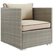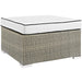 Enjoy the outdoors while benefiting from style and comfort. Repose offers a detailed tan and gray synthetic rattan weave with UV protection for eye-catching appeal and durability, plush 4� thick all-weather polyester cushions with contrasting color French piping, non-marking foot pads, and sturdy powder-coated aluminum framed seats and ottomans that support up to 331 pounds each. Subtle style defines the Repose outdoor sectional collection making it a natural choice for enhancing your patio, backyard, or poolside gatherings.