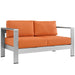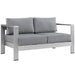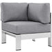 Enjoy your patio or backyard leisure time with the strong and durable Shore Outdoor Patio Collection. Made of anodized brushed aluminum frames and non-marking black plastic foot caps, Shore Outdoor Sectional Sofa pieces come outfitted with resilient fabric canvas tested to last through all weather conditions. The Shore Outdoor Patio Sectional Furniture Set complements casual gatherings with a chic look and ready versatility you can rely on.