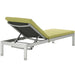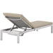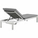 Maintain clean lines with the Shore Outdoor Patio Chaise Lounge Chair Set. Strong and durable, relax as you choose from four available recline positions while relaxing on machine washable all-weather cushions, or sunbathe while lying flush on Shore�s breathable Textilene� mesh. Made with an anodized brushed aluminum frame, Shore Patio Chaise Lounge is a breeze to assemble, comes with clear wheels for easy mobility on the top end, and non-marking black plastic foot caps under the bottom two support legs. Chic and minimalist, the Shore Outdoor Sun Lounger is a piece built to last with the comfort and versatility you�ve been looking for in an outdoor lounger.