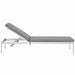 Maintain clean lines with the Shore Outdoor Patio Chaise Lounge Chair Set. Strong and durable, relax as you choose from four available recline positions while relaxing on machine washable all-weather cushions, or sunbathe while lying flush on Shore�s breathable Textilene� mesh. Made with an anodized brushed aluminum frame, Shore Patio Chaise Lounge is a breeze to assemble, comes with clear wheels for easy mobility on the top end, and non-marking black plastic foot caps under the bottom two support legs. Chic and minimalist, the Shore Outdoor Sun Lounger is a piece built to last with the comfort and versatility you�ve been looking for in an outdoor lounger.