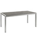 Enjoy your patio or backyard leisure time with the strong and durable Shore Outdoor Patio Dining Table. Made with an anodized brushed aluminum frame and non-marking black plastic foot caps, Shore Patio Dining Table features tone-on-tone grays with wood accents on the paneling for a chic and minimalist look. The Shore Outdoor Dining Table complements your casual gatherings with a look and functionality that you can rely on.