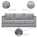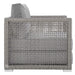 Weave conversational threads into a rollicking good time with Aura Outdoor Patio Collection. Aura comes with a synthetic gray-on-gray tone wicker rattan weave and a powder-coated aluminum frame that delivers a softly versatile outdoor collection that shifts to meet the needs of the moment. Outfitted with machine washable and fade resistant all-weather fabric cushions, and designed with an extra wide and deep body, Aura will make your outdoor spot the focal point of good memories and festive gatherings while enhancing your patio, backyard or poolside arena. Featuring thick cushions and chrome plated anti-skid feet, enjoy spacious seating and enhanced comfort with this reliable piece of outdoor furniture. Comes fully assembled. Set Includes: One - Aura Armchair One - Aura Coffee Table One - Aura Loveseat One - Aura Sofa Modern Outdoor Patio Collection Gray Synthetic PE Wicker Rattan Plush All-Weather Cushions Powder Coated Aluminum Frame "Fade, Water and UV Resistant" Ships Pre-Assembled Chrome Plated Anti-Skid Feet Chair Weight Capacity: 331 lbs. Overall Armchair Dimensions: 27.5"L x 32"W x 32"H Seat Dimensions: 22"L x 23.5"W x 15.5"H Armrest Dimensions: 32"L x 27.5"W x 25.5"H Overall Coffee Table Dimensions: 47"L x 24"W x 15.5"H Overall Sofa Dimensions: 75"L x 32"W x 32"H Seat Dimensions: 22"L x 15.5"H Armrest Dimensions: 32"L x 75"W x 25"H Backrest Height: 32"H Seat Cushion Dimensions: 30.5"L x 24"W x 6"H Overall Loveseat Dimensions: 32"L x 52"W x 32"H Seat Dimensions: 22"L x 48"W x 15.5"H Armrest Height: 25"H Armrest Height from Seat: 9.5"H Seat Cushion Dimensions: 30.5"L x 24"W x 6"H Back Cushion Dimensions: 4"L x 24"W x 16.5"H Overall Product Dimensions: 56"L x 219.5"W x 32"H