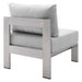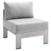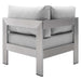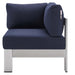 Enjoy your patio or backyard leisure time with the strong and durable Shore Outdoor Patio Aluminum 5 Piece Sectional Sofa Set. Made with anodized brushed aluminum frames and non-marking black plastic foot caps, Shore comes outfitted with resilient Sunbrella� fabric canvas cushions tested to last through all weather conditions. The Shore Outdoor Sectional Sofa Set complements your casual gatherings with a look and functionality you can rely on. Set Includes: 1 Left-Arm Sofa, 1 Right-Arm Sofa, 1 Corner Chair, 1 Armchair, 1 Coffee Table