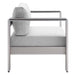 Enjoy your patio or backyard leisure time with the strong and durable Shore Outdoor Patio Aluminum 7 Piece Sectional Sofa Set. Made with anodized brushed aluminum frames and non-marking black plastic foot caps, Shore comes outfitted with resilient Sunbrella� fabric canvas cushions tested to last through all weather conditions. The Shore Outdoor Sectional Sofa Set complements your casual gatherings with a look and functionality you can rely on. Set Includes: 1 Left-Arm Sofa, 1 Right-Arm Sofa, 3 Armless Chairs, 2 Armchairs