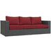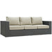 Outfit your patio with an imaginative Sojourn Outdoor Patio Furniture series. The Sojourn Outdoor Patio Sofa offers a robust seating experience that easily rearranges according to usage. Outfitted with industry-leading Sunbrella� fabric cushions, synthetic rattan weave, UV protection, powder-coated aluminum frame, immensely enjoy your outdoor time with an outdoor wicker couch that enhances patio, backyard, or poolside areas. This installment of the series is an Outdoor Patio Sofa.