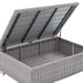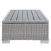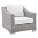 Enjoy fresh air and alfresco relaxation with the Conway Outdoor Patio Sunbrella� Wicker Rattan 4-Piece Furniture Set. Wrapped in UV-resistant light gray synthetic wicker rattan, this patio furniture set boasts organic texture and a neutral hue that brings a calming presence to your outdoor space. The frame of this outdoor furniture set and outdoor ottoman are crafted with durable powder-coated aluminum and rest on L-shaped legs with plastic foot glides. Thick foam padded cushions covered with washable water-resistant Sunbrella� covers offer a comfortable seat and affix securely to the lounge chair with cord tension attachments. Trending aesthetics and a classic design define this outdoor patio furniture collection making it a beautiful addition to any outdoor space including the backyard, patio, porch, balcony, or poolside. Assembly required. Set Includes: Sofa, Loveseat, Armchair, Coffee Table