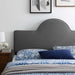 Awaken a master bedroom or guest bedroom with the energizing style of the Dawn Performance Velvet King/California King Headboard. Featuring an arching silhouette reminiscent of the morning sunrise, this upholstered headboard is covered in stain-resistant performance velvet that offers luxe texture and a glam deco look. This king or Cali king size headboard is padded with dense foam creating a soft, supportive place to rest and relax while sitting up in bed. With a sturdy construction and adjustable height, this velvet headboard features five mounting positions to fit almost any Cal king or king bed frame. Assembly required.