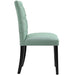 Bestow elegance with the Duchess Dining Chair. Chic and luxurious, Duchess features a stylish curvy form, richly tufted button back, dense foam padding, fine fabric upholstery, and wood legs topped with non-marking foot caps. Resonate grace and charm with a dining chair perfect for the modern home.