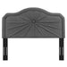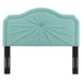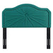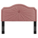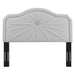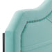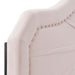Infuse your master bedroom or guest bedroom with the vintage modern elegance and glam deco style of the Kristin Performance Velvet King/California King Headboard. Featuring luxe velvet texture, an arched shape, nailhead trim, and a pleated design, this king/Cali king size headboard is a beautiful update. Upholstered in soft, stain-resistant performance velvet, this padded headboard offers supportive comfort while sitting up in bed resting, relaxing, reading, or watching TV. A beautiful backdrop for a variety of bedding styles, this adjustable headboard fits almost any king or California king bed with its three mounting positions. Assembly required.