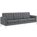 The mid-20th century was a time when hopes were at their highest. Technological developments were bustling forward, and the new world was just barely visible in the distance. But this time also presented a dilemma of sorts. The test of this forthcoming era was to be whether industry would foster comfort or stifle it. What makes the Loft series so complete? At first glance, it displays a pleasant linear design with an external tubular stainless steel frame. The back and seat are tufted and buttoned to enhance the overall richness of the piece. But can these aspects be said to define the totality of a classic? The answer then must be something profound. A thought that serves as representative of that era, while matching the sentiments of our present age. Our suggestion is that the Loft series conveys the potential of progress. From amidst the steel base, a comfortable seating experience is attained. From out of the exponential surge of technological growth, comes peace and solace. Perhaps this is why Loft is the sofa series of choice for so many Fortune 500 companies. Aside from its iconic feel, the set is symbolic of a time when technological innovation could do no wrong. When �faster� was seen only as something positive. The Loft series is the preferred choice for reception areas, living rooms, hotels, resorts, restaurants, and other lounge spaces. Set Includes: One - Loft Fabric Loveseat One - Loft Fabric Sofa Fine Polyester Upholstery Tufted Seat and Back with Buttons Tubular Stainless Steel Frame Removable Zippered Cushion Cover Non-Marking Foot Pads Overall Loveseat Dimensions: 31"L x 63"W x 32"H Seat Dimensions: 22.5"L x 18.5"W x 16.5"H Backrest Dimensions: 4.5"W x 18"H Armrest Dimensions: 6"W x 23.5"H Cushion Thickness: 4.5"H Armrest Height from Seat: 7"H Overall Sofa Dimensions: 91.5"L x 31"W x 32"H Seat Dimensions: 21.5"L x 16.5"H Armrest Height: 23.5"H Backrest Dimensions: 4.5"W x 18"H Armrest Dimensions: 6.5"H Cushion Thichkness: 4.5"H Overall Product Dimensions: 31"L x 154.5"W x 32"H