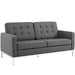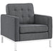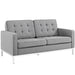 The mid-20th century was a time when hopes were at their highest. Technological developments were bustling forward, and the new world was just barely visible in the distance. But this time also presented a dilemma of sorts. The test of this forthcoming era was to be whether industry would foster comfort or stifle it. What makes the Loft series so complete? At first glance, it displays a pleasant linear design with an external tubular stainless steel frame. The back and seat are tufted and buttoned to enhance the overall richness of the piece. But can these aspects be said to define the totality of a classic? The answer then must be something profound. A thought that serves as representative of that era, while matching the sentiments of our present age. Our suggestion is that the Loft series conveys the potential of progress. From amidst the steel base, a comfortable seating experience is attained. From out of the exponential surge of technological growth, comes peace and solace. Perhaps this is why Loft is the sofa series of choice for so many Fortune 500 companies. Aside from its iconic feel, the set is symbolic of a time when technological innovation could do no wrong. When �faster� was seen only as something positive. The Loft series is the preferred choice for reception areas, living rooms, hotels, resorts, restaurants, and other lounge spaces. Set Includes: One - Loft Fabric Loveseat Two - Loft Fabric Armchair Fine Polyester Upholstery Tufted Seat and Back with Buttons Tubular Stainless Steel Frame Removable Zippered Cushion Cover Non-Marking Foot Pads Overall Armchair Dimensions: 31"L x 31"W x 32"H Seat Dimensions: 21.5"L x 16.5"H Armrest Height: 23.5"H Backrest Dimensions: 4.5"W x 18"H Armrest Dimensions: 6.5"H Cushion Thichkness: 4.5"H Base Dimensions: 31"W Frame Dimensions: 30"L x 30"W x 6.5"H Overall Loveseat Dimensions: 31"L x 63"W x 32"H Seat Dimensions: 22.5"L x 18.5"W x 16.5"H Backrest Dimensions: 4.5"W x 18"H Armrest Dimensions: 6"W x 23.5"H Cushion Thickness: 4.5"H Armrest Height from Seat: 7"H Overall Product Dimensions: 31"L x 125"W x 32"H