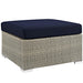 Enjoy the outdoors while benefiting from style and comfort of the Repose Outdoor Patio Furniture Series. Repose Patio Ottoman offers a detailed tan and gray synthetic rattan weave with UV protection for eye-catching appeal and durability, plush 4� thick all-weather polyester cushions using industry-leading Sunbrella� fabric, non-marking foot pads, and a sturdy powder-coated aluminum frame that supports up to 331 pounds. Subtle style defines the Repose outdoor sectional collection making it a natural choice for enhancing your patio, backyard, or poolside gatherings. This installment of the series is an outdoor patio ottoman.