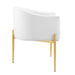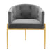 Bring luxe elegance to your living space or dining room with the Savour Tufted Performance Velvet Accent Armchair. Featuring a sweeping silhouette and updated club chair design, this velvet chair is suited for the dining table or living room, entryway, bedroom, or office as an accent chair. This accent chair is upholstered in stain-resistant performance velvet upholstery and features dense foam padding to offer a comfortable seat while dining, working, reading, or relaxing. Resting on chrome gold stainless steel legs, this versatile accent chair has interior button tufting and a charming curved shape. Chair Weight Capacity: 300 lbs. Set Includes: One - Savour Tufted Accent Chair Tufted Accent Chair Stain-Resistant Performance Velvet Gold Stainless Steel Legs Dense Foam Padding Assembly Required Chair Weight Capacity: 300 lbs. Overall Product Dimensions: 24"L x 26"W x 30"H Seat Dimensions: 19"L x 19"W x 19"H Armrest Dimensions: 24.5"W x 26.5"H Backrest Height: 30"H
