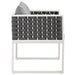 Gather family and friends for pleasant weather and good conversation with the Stance Outdoor Collection for an exceptional al fresco dining experience. Boasting a contemporary modern look, Stance features a woven polyester fabric rope seat back and sleek powder-coated aluminum frame, while waterproof all-weather fabric cushions with dense foam padding provide a comfortable seating experience. A versatile set designed for long-lasting durability, the Stance Collection can be mixed and matched and effortlessly arranged to fit the spontaneous needs of you and your guests. Comes Fully Assembled. Chair Weight Capacity: 331 lbs.