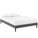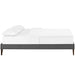 Accelerate your bedroom decor with the Tessie Platform Bed. Made with a solid wood frame upholstered in polyester fabric, Tessie features tapered wood legs, plastic foot glides, ten sturdy wood slats with a centered supporting bar and two support legs for enhanced stability. Due to the wooden slat support system, the use of a box spring is unnecessary. Tessie supports memory foam mattresses such as our Aveline series, and is compatible with one of our headboard styles: Jessamine, Terisa, Laura, Phoebe, Camille, and Josie. Perfect for mid-century modern, minimalist and contemporary bedrooms. Mattress not included.