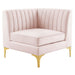 Elevate your living space with the visual appeal and linear detail of the Triumph Channel Tufted Performance Velvet 5-Piece Sectional Sofa. With interior channel tufting and luxe velvety texture, this sectional sofa abounds in retro modern style and glam deco charm. This couch is part of a sectional sofa collection that allows you to create a seating solution that works for your living room, bedroom, office space, entryway, or lounge area. This upholstered sectional sofa is covered in stain-resistant performance velvet and features dense foam padding and a sinuous spring support system for a premium seating experience. The velvet sofa sits on four gold metal legs with non-marking foot caps to protect your flooring. Weight Capacity for Each Sectional Sofa Piece: 440 lbs.