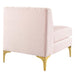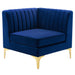 Elevate your living space with the visual appeal and linear detail of the Triumph Channel Tufted Performance Velvet 6-Piece Sectional Sofa. With interior channel tufting and luxe velvety texture, this sectional sofa abounds in retro modern style and glam deco charm. This couch is part of a sectional sofa collection that allows you to create a seating solution that works for your living room, bedroom, office space, entryway, or lounge area. This upholstered sectional sofa is covered in stain-resistant performance velvet and features dense foam padding and a sinuous spring support system for a premium seating experience. The velvet sofa sits on four gold metal legs with non-marking foot caps to protect your flooring. Weight Capacity for Each Sectional Sofa Piece: 440 lbs.