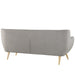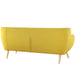 Take notice and engage your sensibilities with this plush dual cushion, organically shaped loveseat. Remark is gracefully positioned on solid natural wood dowel legs designed according to mid-century sentiments. Whether settling in with coffee and brunch, or entering a spirited discussion with friends, Remark�s polyester upholstery, two rows of finely stitched back seat buttons, and organic form ensure an eye-catching appeal at every turn. Bring depth and modernity to your contemporary living room or lounge area with the Remark mid-century modern style loveseat.