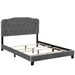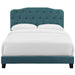 Refresh your bedroom space with the cozy elegance of the Amelia King Bed. Designed with chic style and contemporary charm, Amelia is upholstered in stain-resistant velvet polyester fabric and features a timeless button-tufted headboard, solid wood and LVL construction, and wood legs with non-marking caps. Complete with reinforced center beams for maximum stability, Amelia accommodates memory foam, spring, latex, and hybrid mattresses. A modern centerpiece to a master bedroom or guest suite, this upholstered bed frame effortlessly transforms bedroom d�cor with its gentle curves and luxe look. Box spring required (not included). Bed Weight Capacity: 800 lbs.